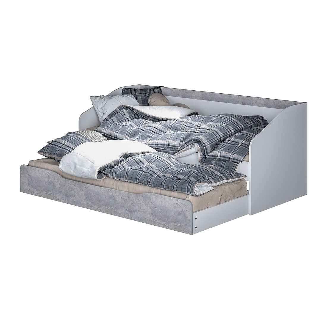 Кровать, оборудована выкатным ящиком. Ящик можно использовать и как дополнительное спальное место, размещая в нем дополнительный матрас, и как место для хранения игрушек или постельных принадлежностей.