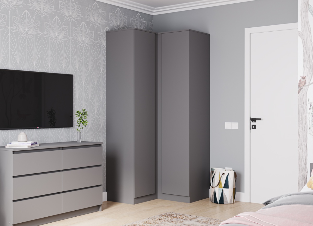 Шкаф угловой, не громоздкий, многофункциональный. Он состоит из двух частей:
