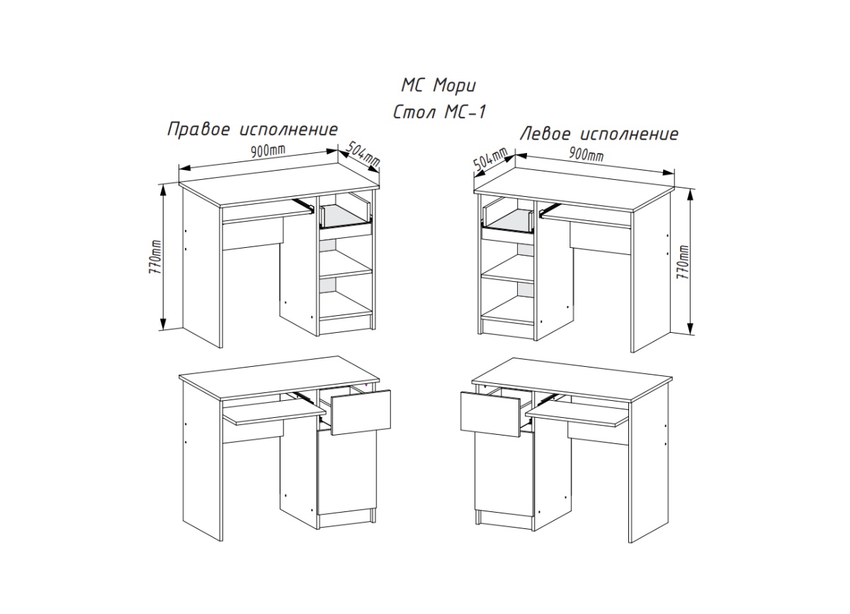 Стол письменный Мори МС-1 - элемент модульной мебели для всей квартиры. Его можно дополнить комодом, шкафом, кроватью серии "Мори".
