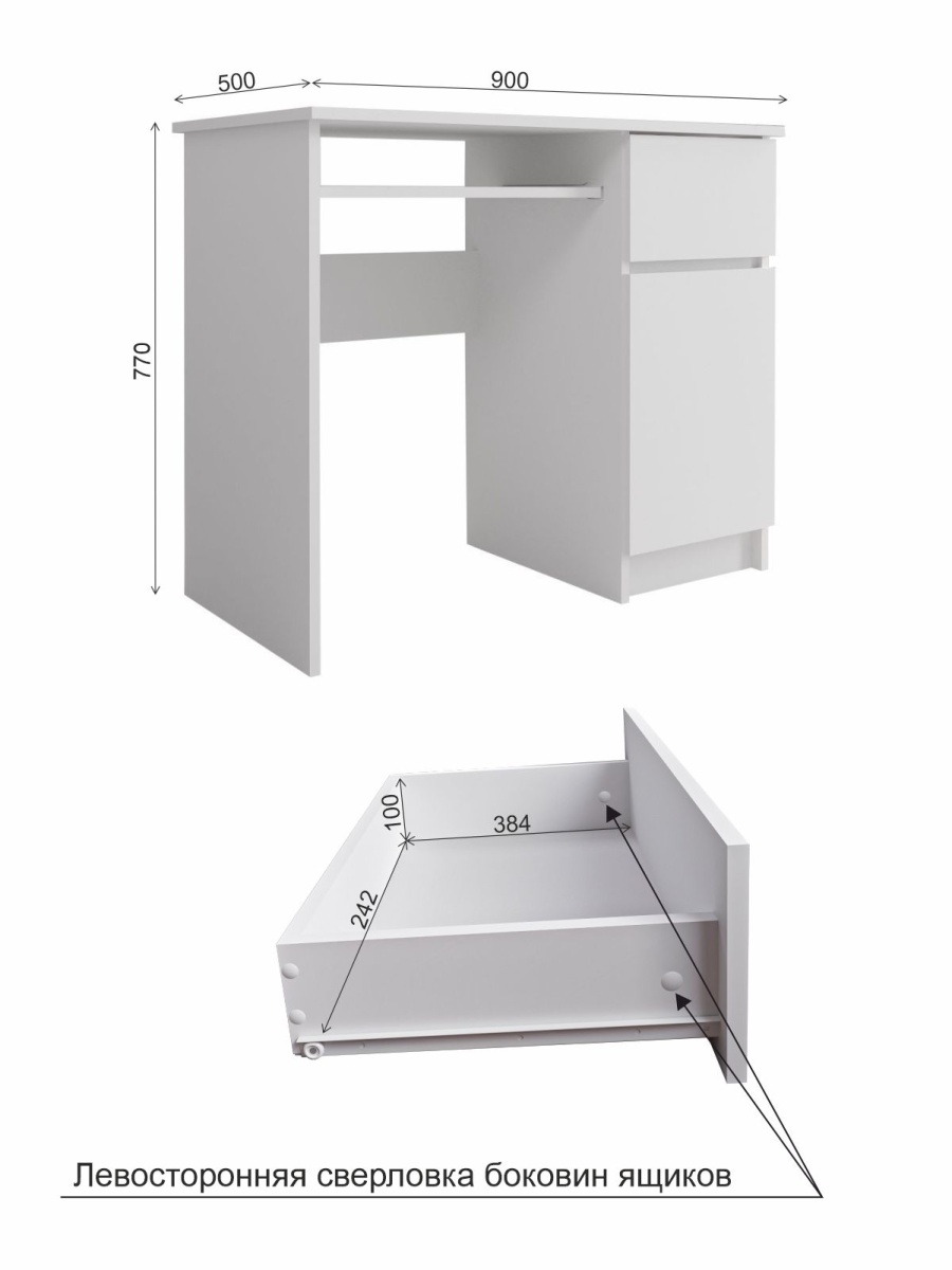 Материал изгототовления корпуса и стлешницы - ЛДСП, задняя стенка и дно ящика — ЛДВП, кромка ПВХ - 0,4 мм.