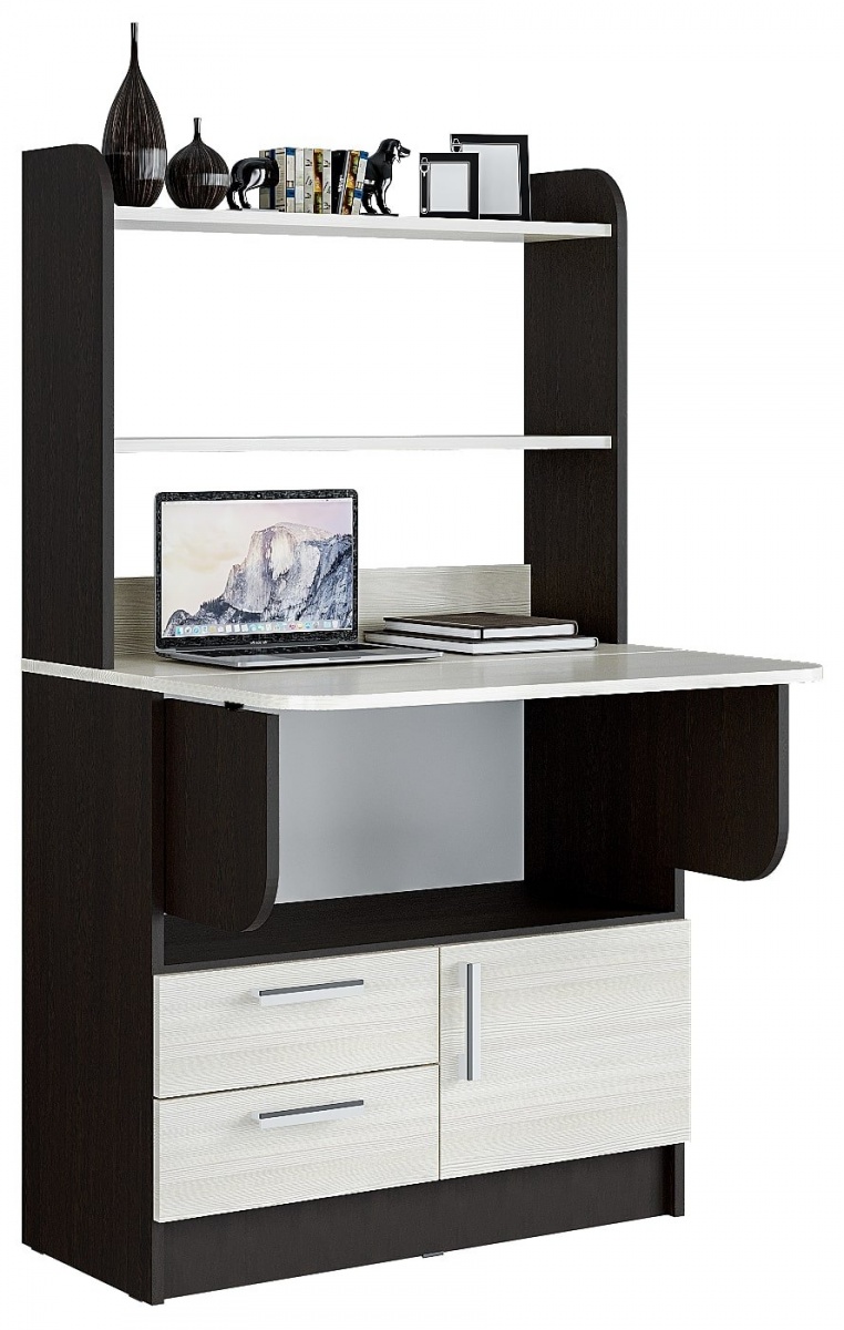 Модель оснащена механизмом «книжка», благодаря которому за секунды превращается во письменный стол. В собранном виде «Рокки» выступает в роли удобной тумбы с вместительными ящиками и надстройкой для хранения вещей. Идеально подойдет для использования как в комнате подростка, так и в офисе.