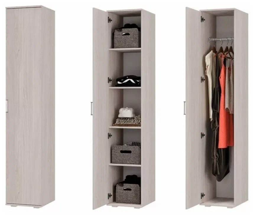 Пенал состоит из 4 полок для одежды, в который поместятся много полезных вещей.