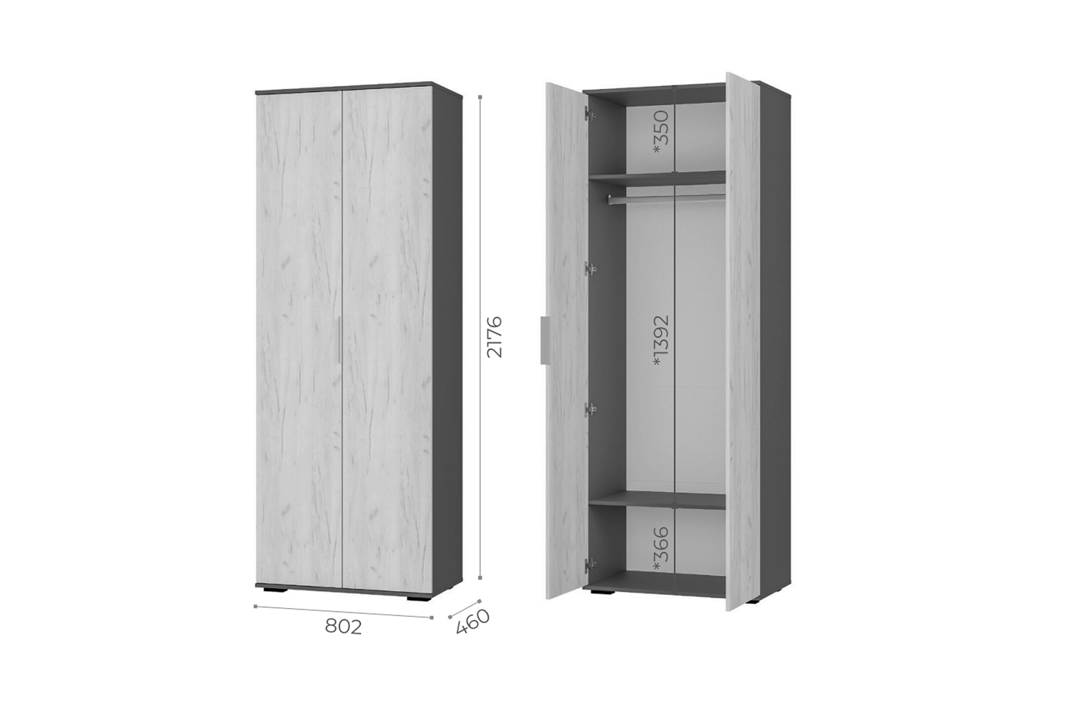 Шкаф 2-х створчатый Плаза ШК-04 (Графит/Дуб крафт белый)