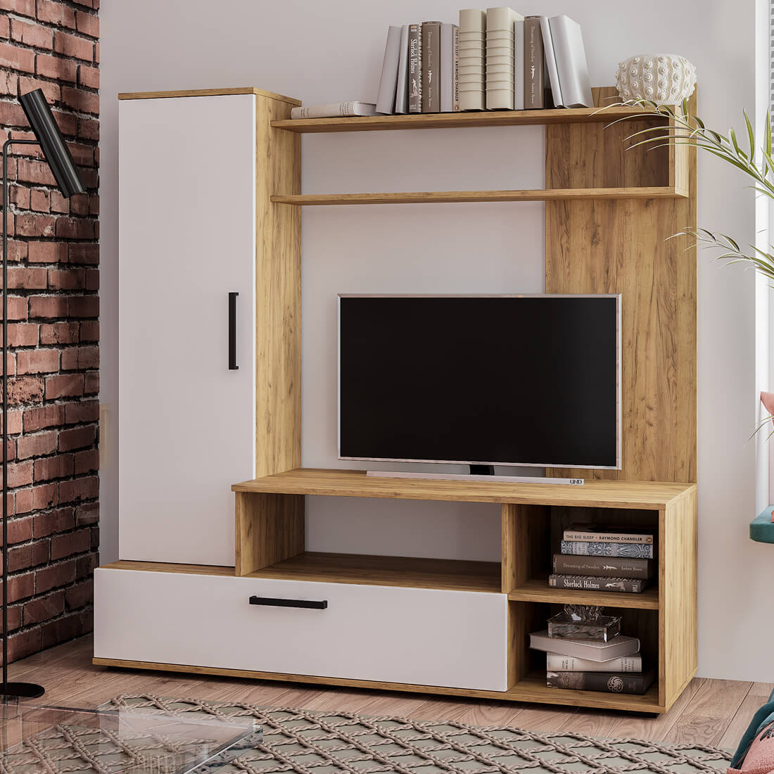 Гостиная "Евро-2" – отличный выбор для небольшой комнаты, который с лёгкостью впишется в интерьер любого стиля. Данная модель вмещает в себя всё необходимое для хранения: вместительную нишу под ТВ, открытые и закрытые полки для книг, сувениров и разных мелочей.