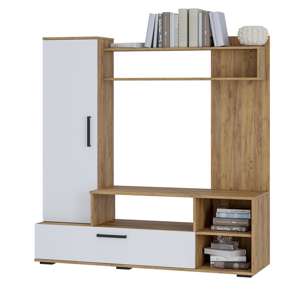 Гостиная "Евро-2" – отличный выбор для небольшой комнаты, который с лёгкостью впишется в интерьер любого стиля. Данная модель вмещает в себя всё необходимое для хранения: вместительную нишу под ТВ, открытые и закрытые полки для книг, сувениров и разных мелочей.