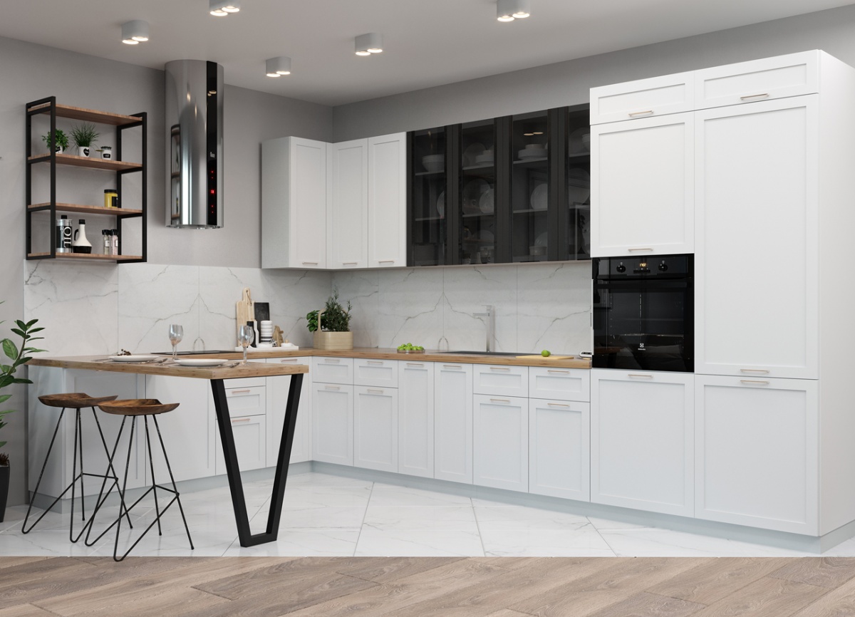 Бытовая техника, мойка, смеситель, стеновая панель приобретаются отдельно.