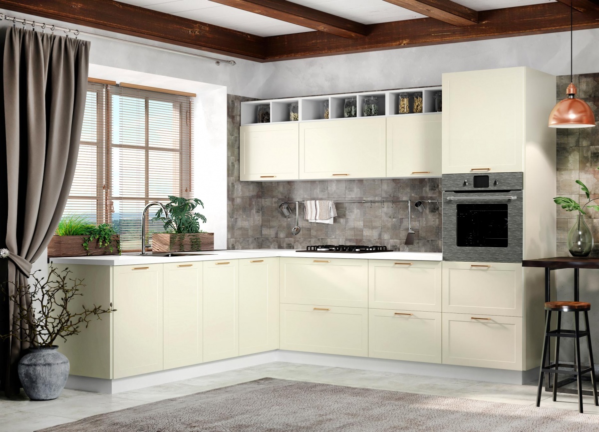 Модульная кухня «Квадро» (Ваниль кожа/Железо)
