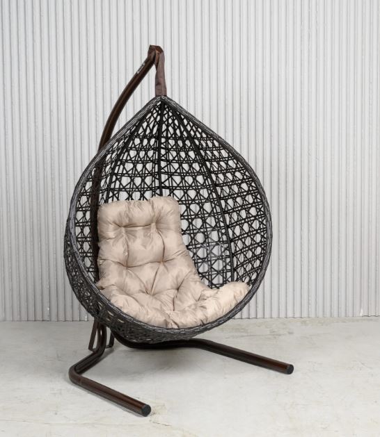 Надежный каркас кокона из утолщённых труб оплетённых ротангом, со сложным дизайнерским плетением