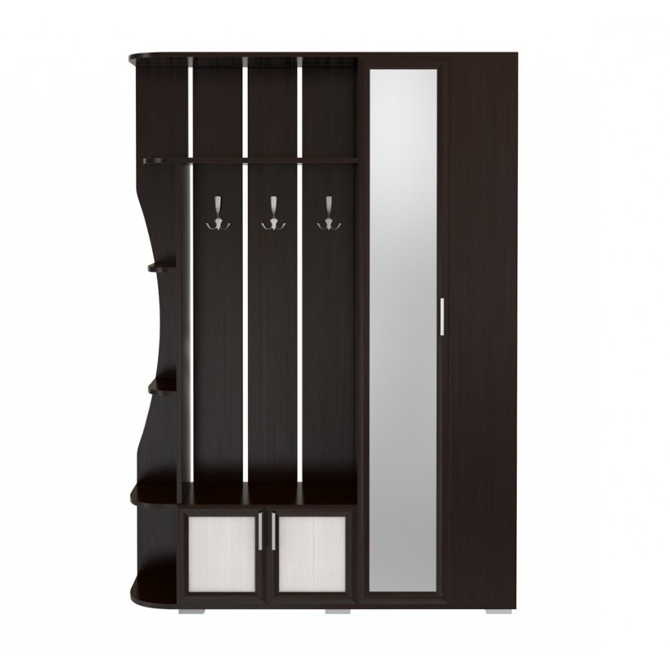 1, Прихожая имеет вместительный двустворчатый шкаф для верхней одежды, с выдвижной штангой, и внутренними отделениями для головных уборов и обуви.