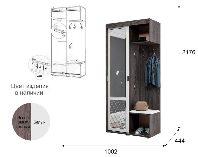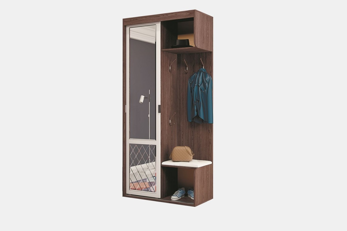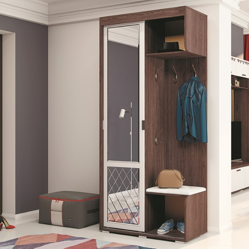 Модель "Варда" выглядит компактной, обладая всем необходимым функционалом. Зеркало на фасаде шкафа облагорожено фацетом и ромбовидным дизайном в нижней части створки. Удобные крючки для одежды и аксессуаров предусмотрены на двух уровнях. "Варда" идеальна для тех, кто ценит практичность и красоту в деталях. Изящность линий гармонично сочетается с теплым оттенком и фактурой дерева. Прихожая "Варда" создана для того, чтобы Вы чувствовали домашний уют уже на пороге дома.