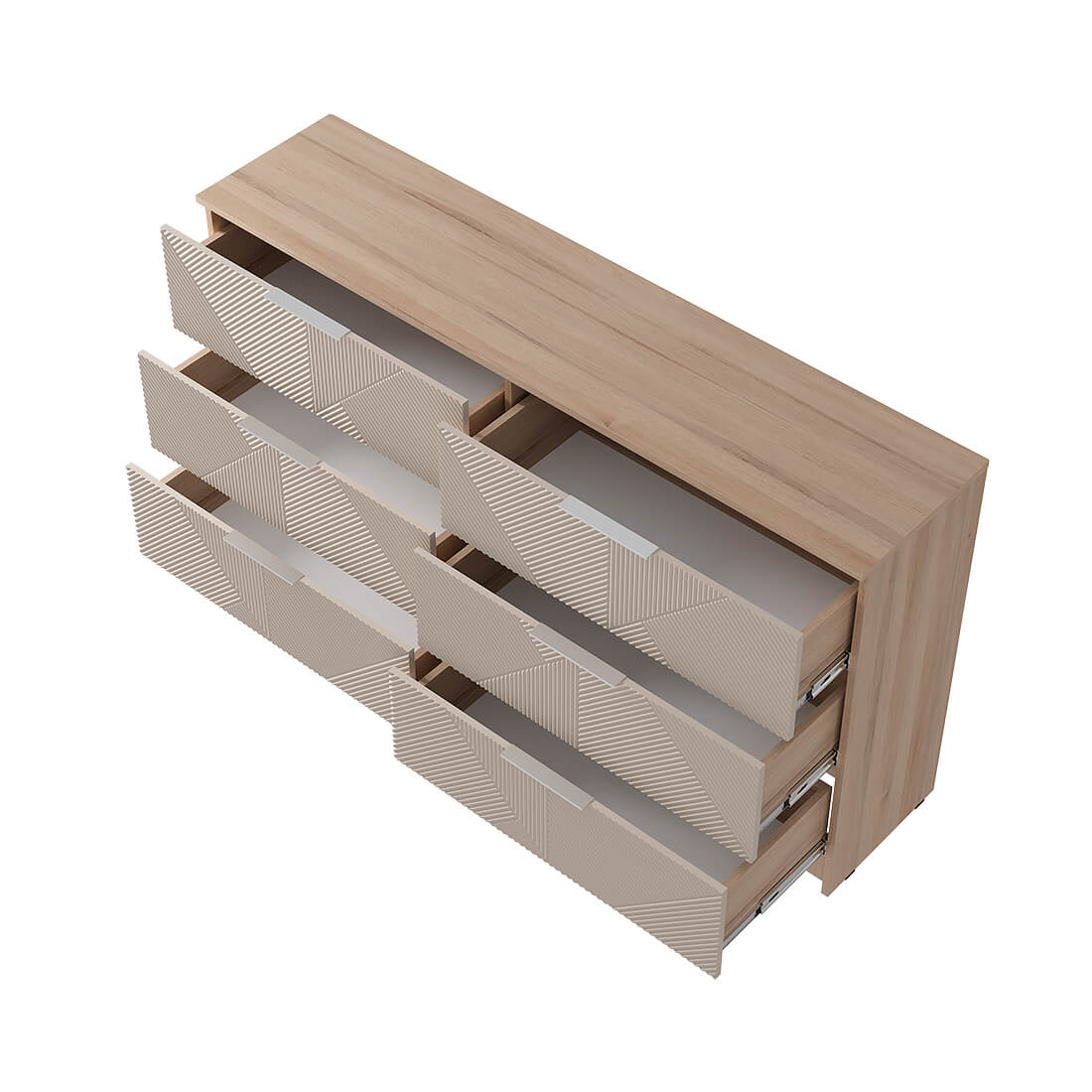 Комод «Эмилия» (КМ-04) – это идеальная альтернатива шкафу для спальни. Эта модель поможет уместить все постельное белье в одном месте, сэкономит пространство и сделает интерьер оригинальнее. Комод состоит из шести просторных ящиков.