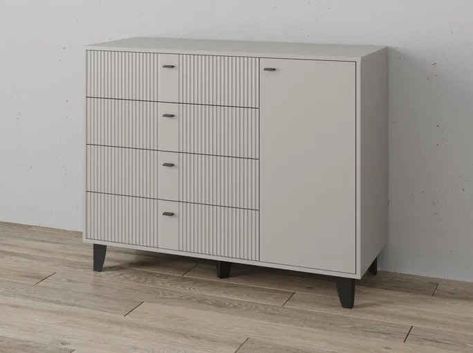 Комод оборудован 4 ящиками и полками, что обеспечит достаточно места для хранения различных вещей. Он идеально подходит для организации пространства, сохранения порядка и создания уютной атмосферы в вашем доме. Удобные ящики обеспечат быстрый доступ к необходимым предметам, а стильный фасад добавит элегантности в ваш интерьер.