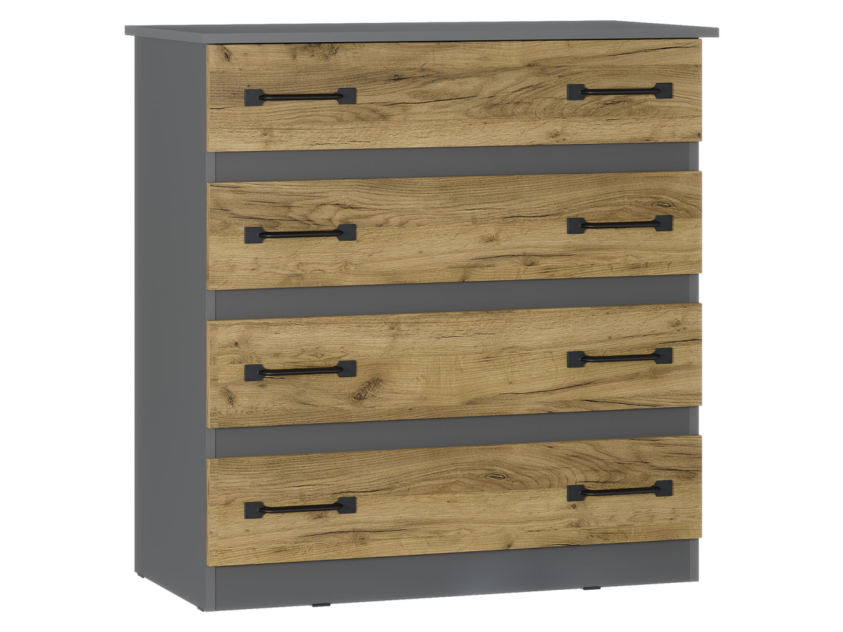 Комод «Лофт» — вместительный комод с четырьмя вместительными ящиками — универсальное решение, которое подойдёт и для спальни, и для домашнего кабинета, и для гостиной. Данная модель идеально подходит для хранения белья, одежды, аксессуаров, важных документов, украшений и мелочей. Верхнюю крышку можно использовать как дополнительную полочку для лампы.
