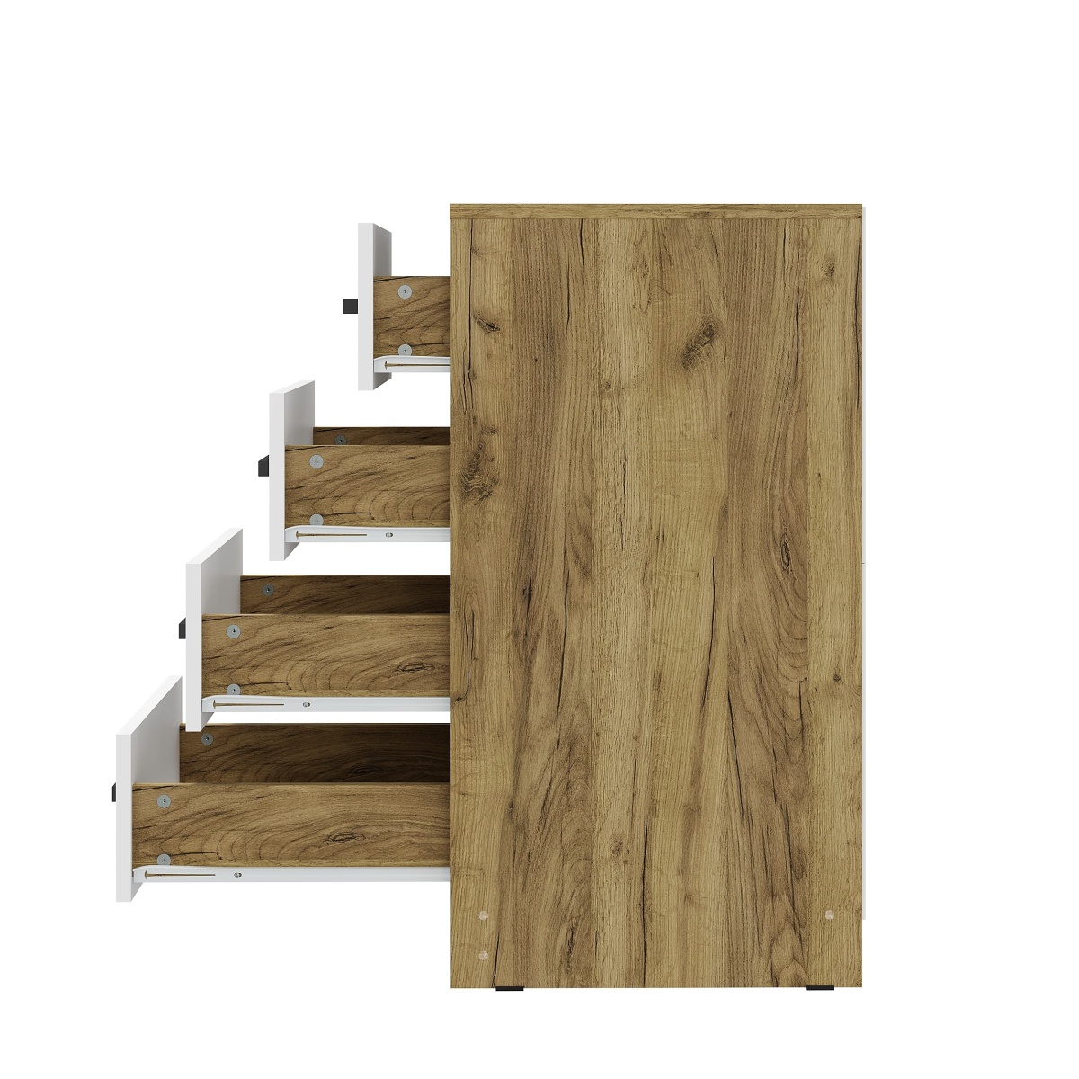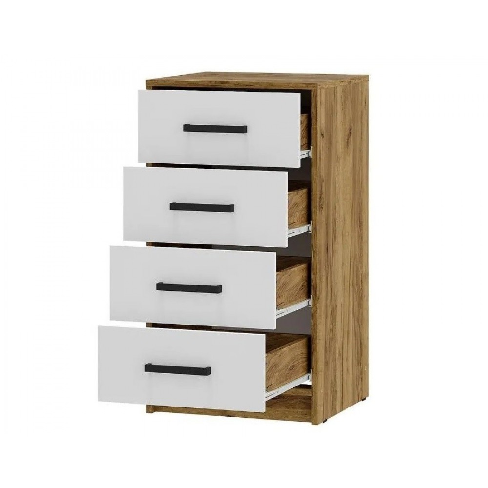 Высокий комод Мия отлично справится с вопросом хранения одежды в сложенном виде, вещей, постельного белья, игрушек, сезонных аксессуаров и всего того, что должно храниться в порядке. 4 выдвижных ящика оснащены роликовыми направляющими и удобными ручками. Регулируемые опоры позволяют установить комод даже на неровном полу. Особенности приятное цветовое решение с древесным рисунком компактный размер роликовые направляющие на ящиках максимальная нагрузка на ящик - 5 кг