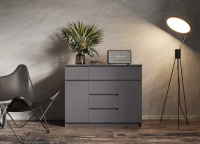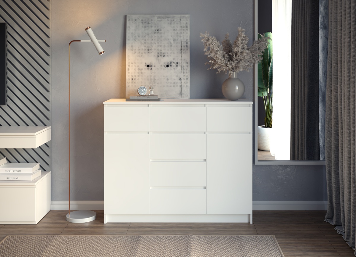 Гармоничные ящики находятся по соседству с раздвижными и распахивающимися створками. В разы увеличивает вместимость для разных вещей. Высота используется как столешница или полка. Для малогабаритных жилищ это идеальный вариант, который позволит заменить огромные сплошные стенки в любом помещении. Особенно в гостиной и прихожей, а также для спальни.
