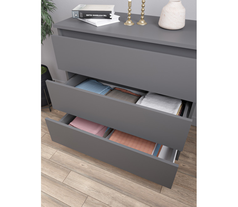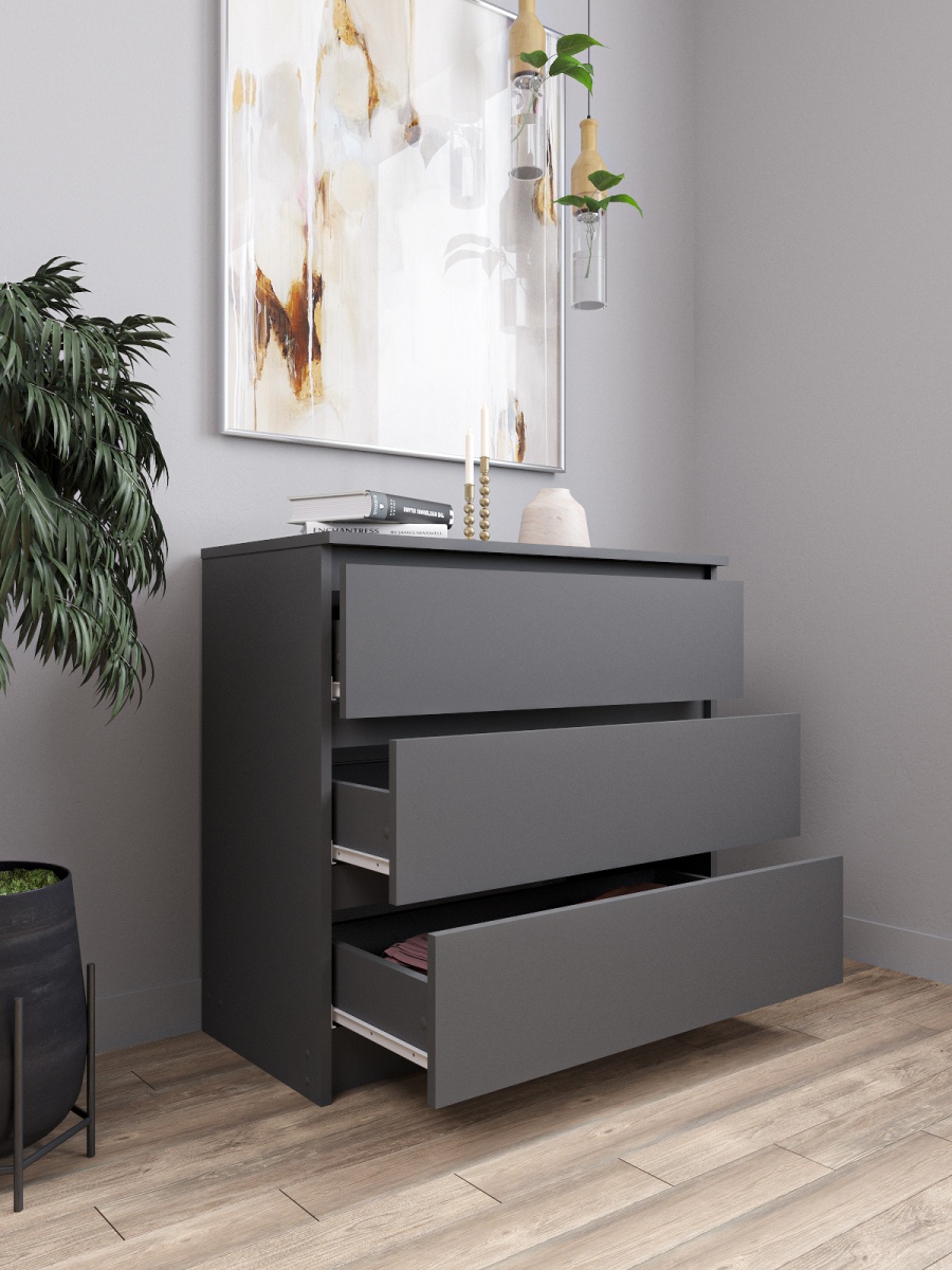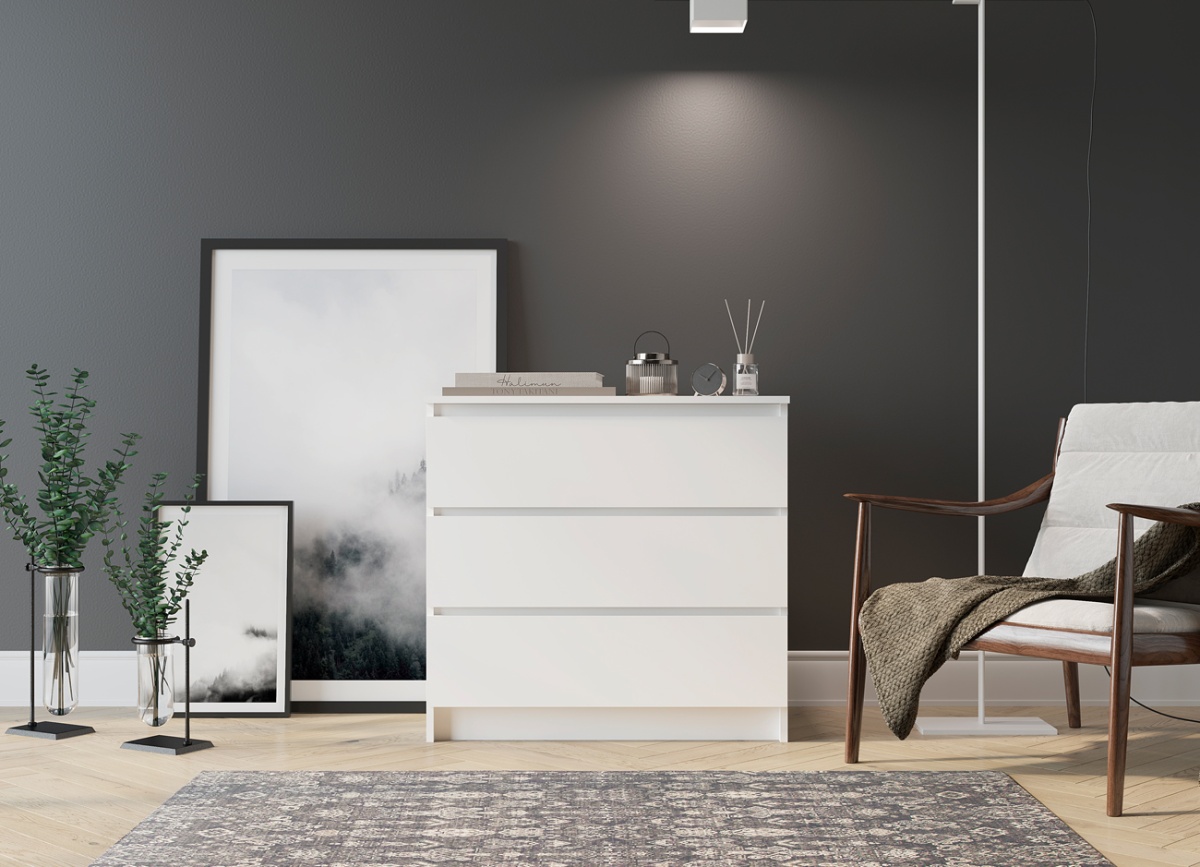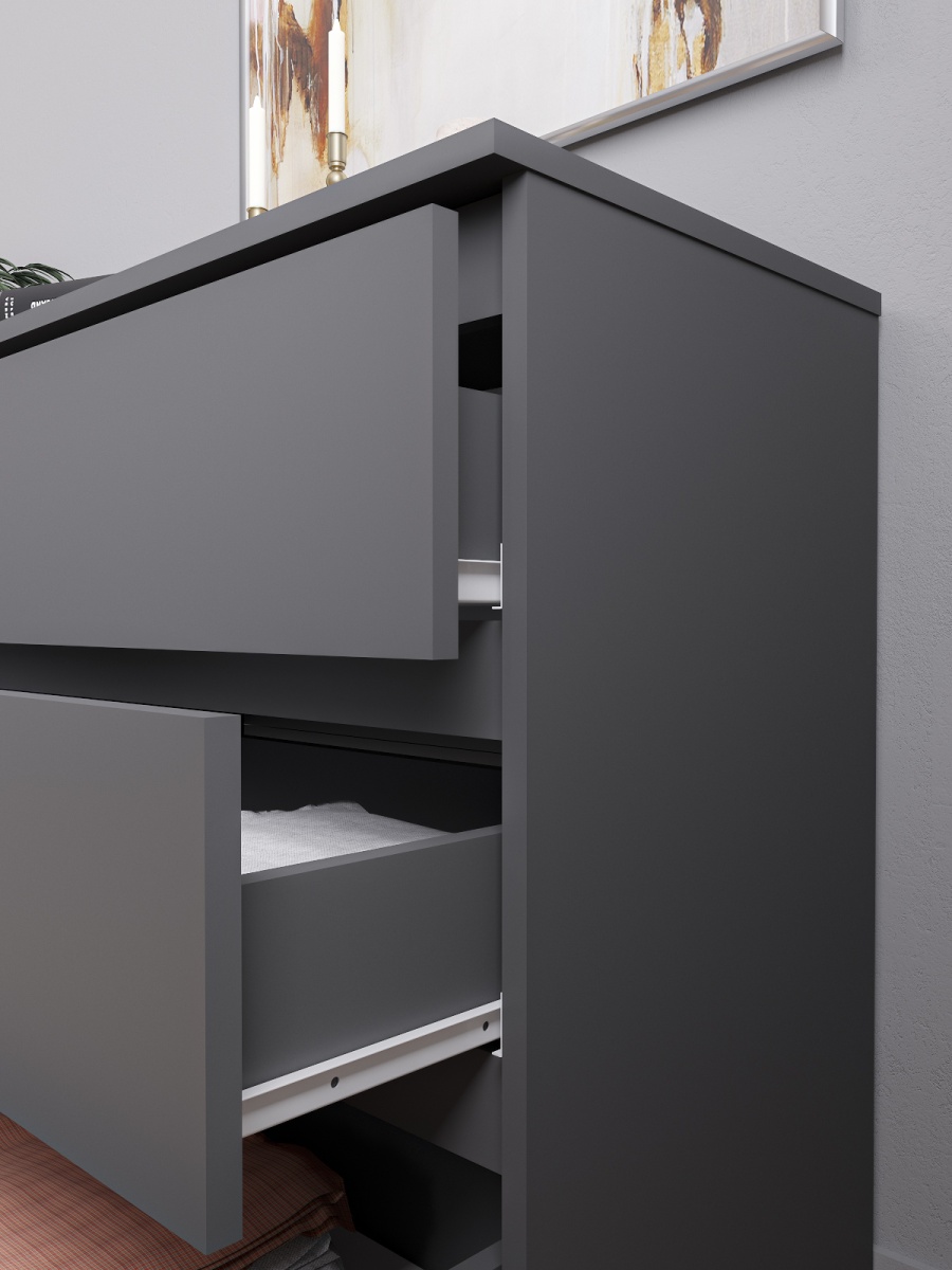 Минимализм – это стиль, которому присуща простота, отсутствие деталей и строгая точность во всем. Минимализму не характерны яркие цвета и оттенки, нагромождение мебели и множество декоративных элементов. Данный комод имеет простые геометрические формы с плоскими поверхностями, выполнен в благородном и стильном цвете -Белый и Графит. Идеально впишется в любую комнату.