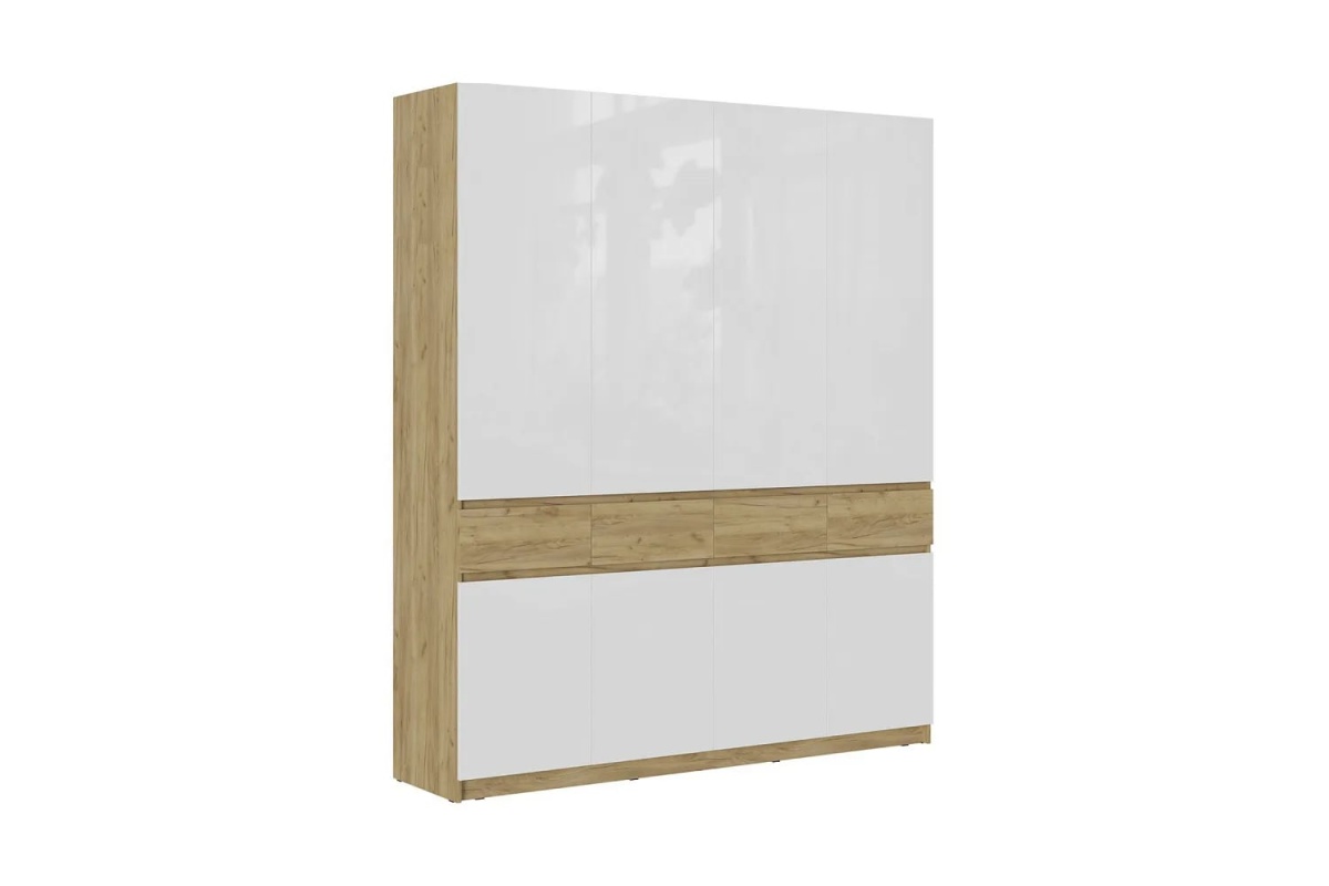 Роджина шкаф 4-х створчатый (ДУБ КРАФТ/БЕЛЫЙ ГЛЯНЕЦ)