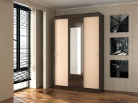 Трехдверный шкаф-купе БАСЯ- – оригинальная бюджетная модель с тремя раздвижными дверьми. Средняя дверь оснащена зеркалом, боковые двери — ручками. Данная модель подойдет для прихожей, гостиной или спальни.