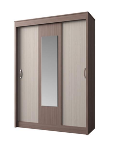 Трехдверный шкаф-купе БАСЯ- – оригинальная бюджетная модель с тремя раздвижными дверьми. Средняя дверь оснащена зеркалом, боковые двери — ручками. Данная модель подойдет для прихожей, гостиной или спальни.