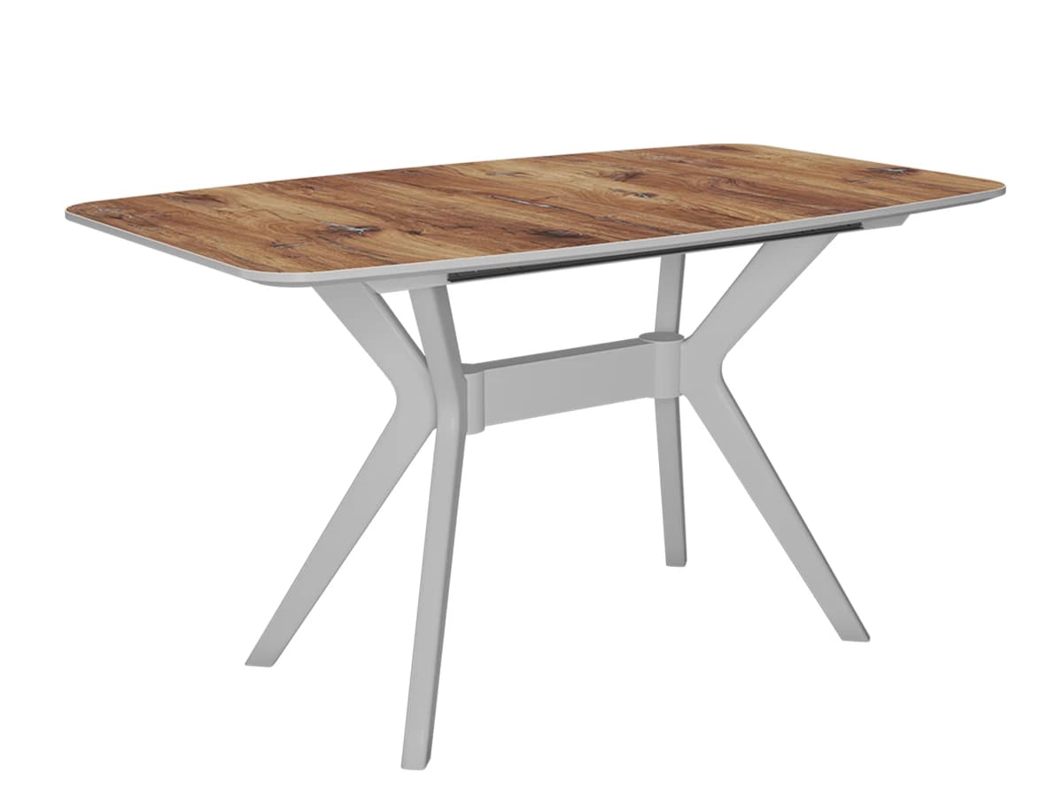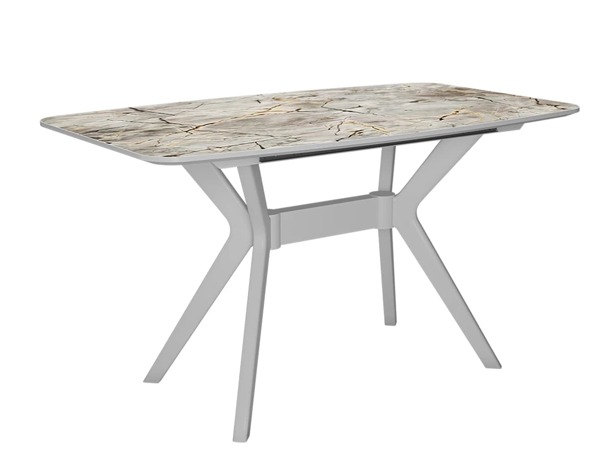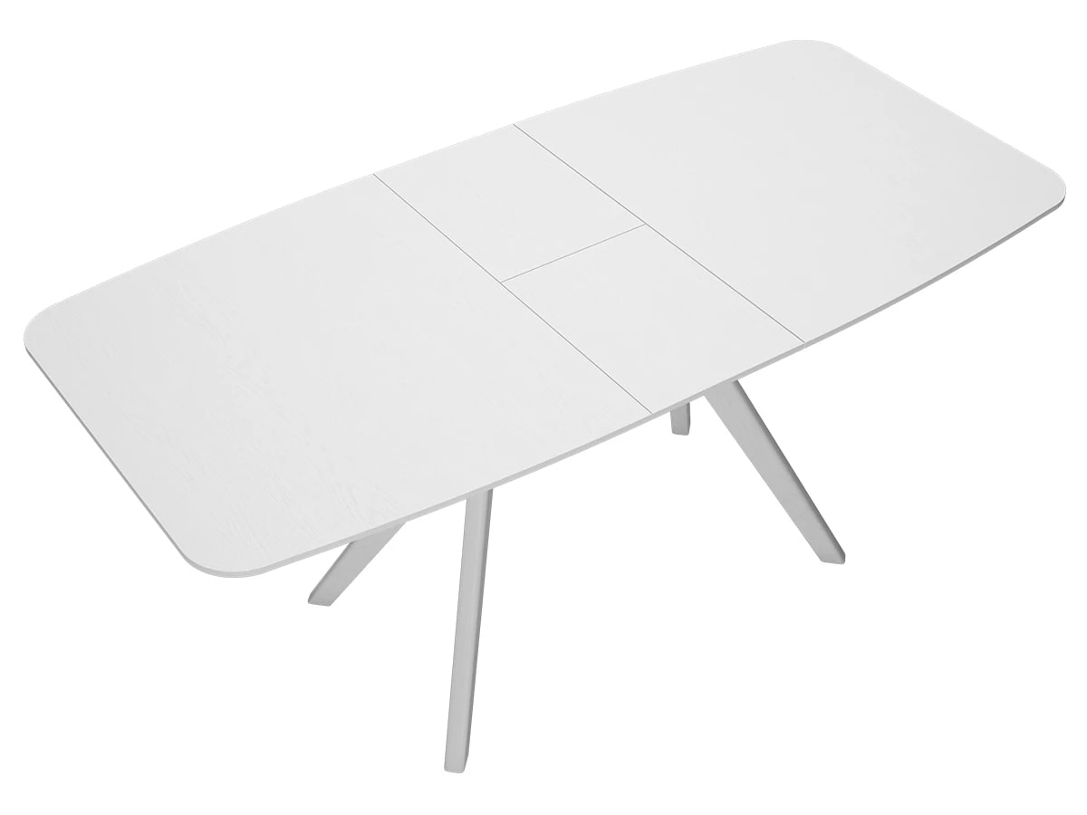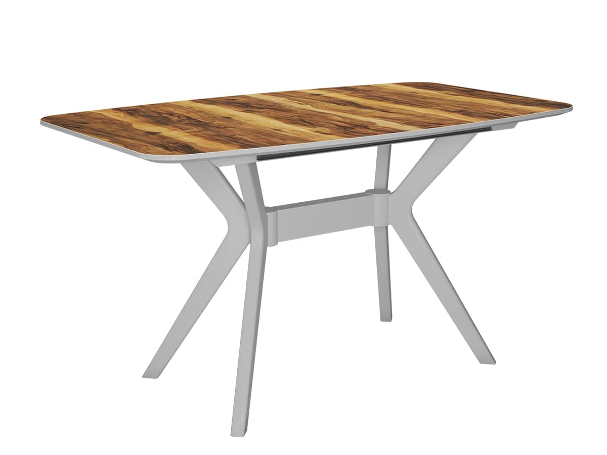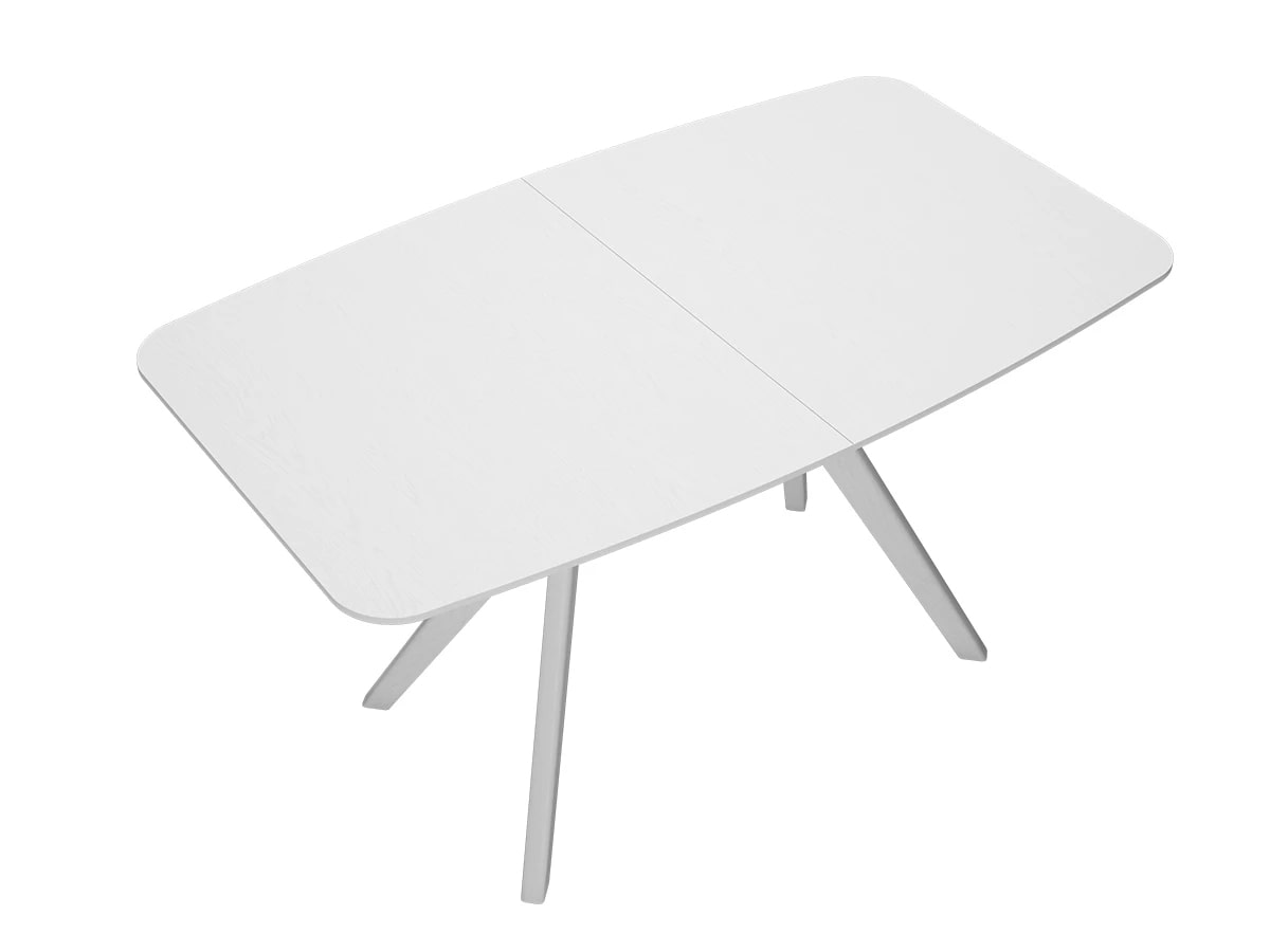 Современный дизайн модели сочетающий в себе интерьерные опоры стола из массива дерева, необычную форму столешницы, дизайнерскую фрезеровку под покраску, уменьшенную рамку стола скрывающую цельную вставку, все эти компоненты позволили создать эффект легкости, воплотить задумку эффекта парящего стола, которая по достоинству будет оценена каждым покупателем данной модели.