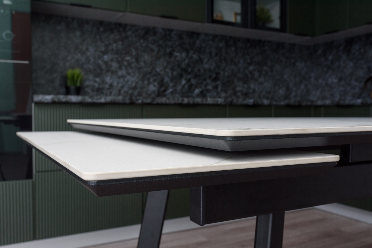 При раздвижении столешницы, рисунок сохраняется и остается цельным.