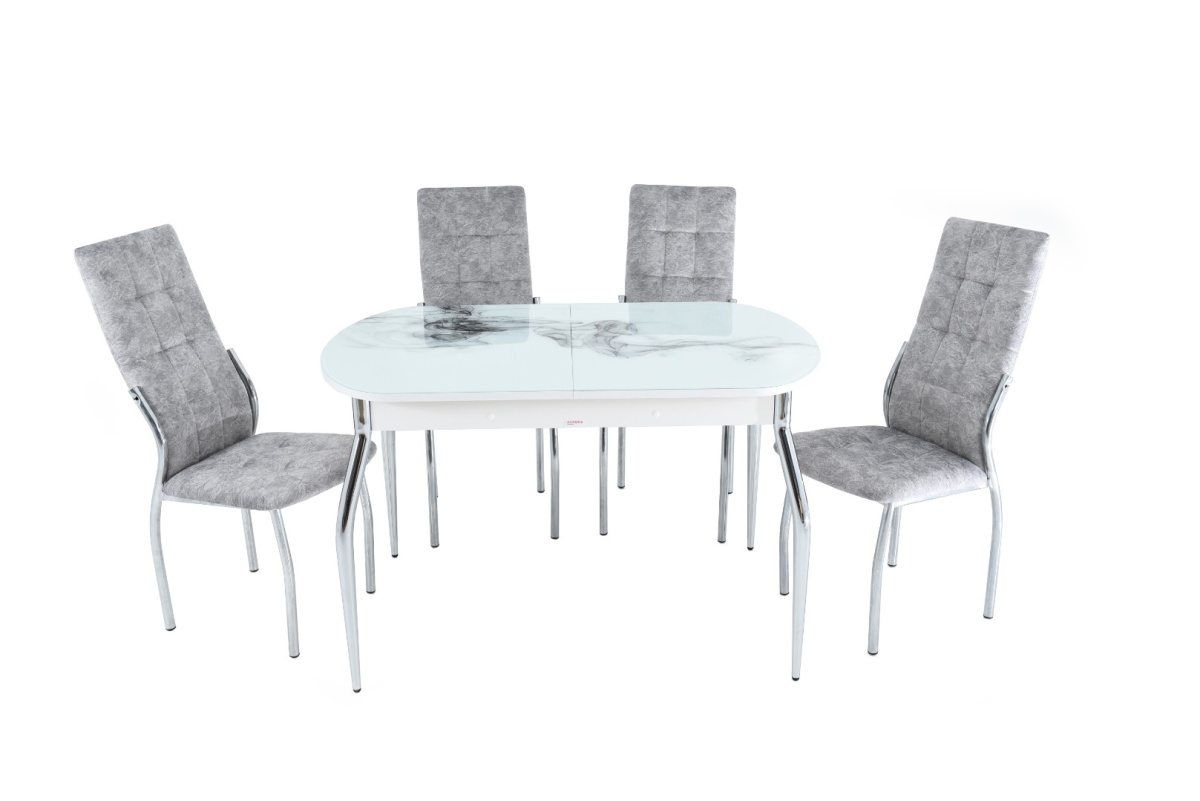 Стол Ривьера СВ Фотопечать - исп.1 (Белый/ Фрукты 28/ ноги №5 хром)