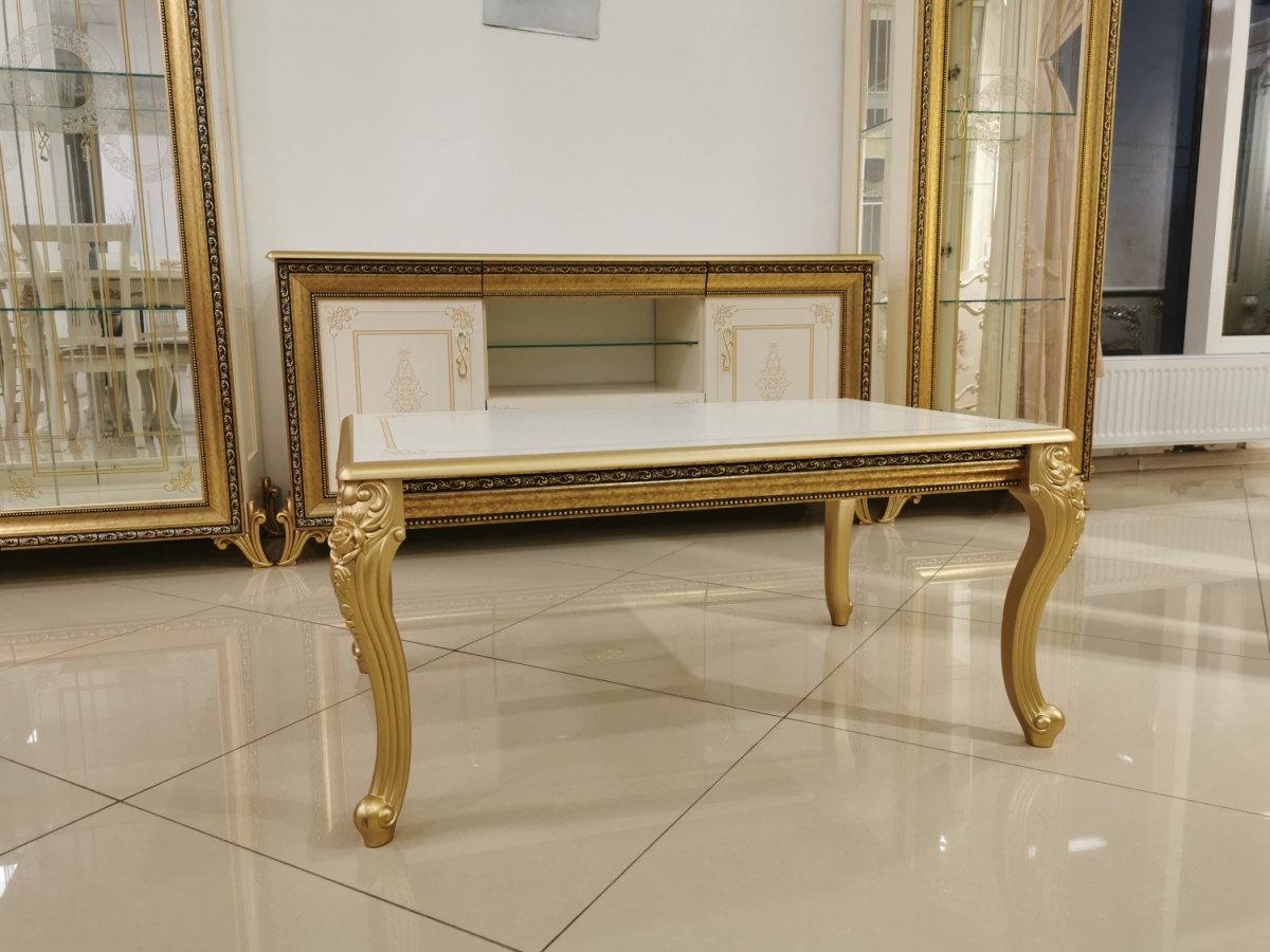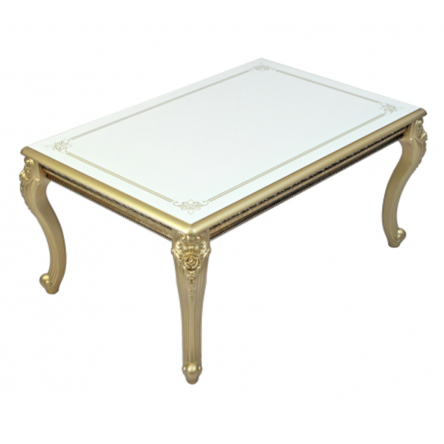 Стол журнальный Версаль ГВ-07. Грациозная красота стола с шелкографией и богатым «золотым» декором и изысканными фигурными ножками, украшенными цветами.
