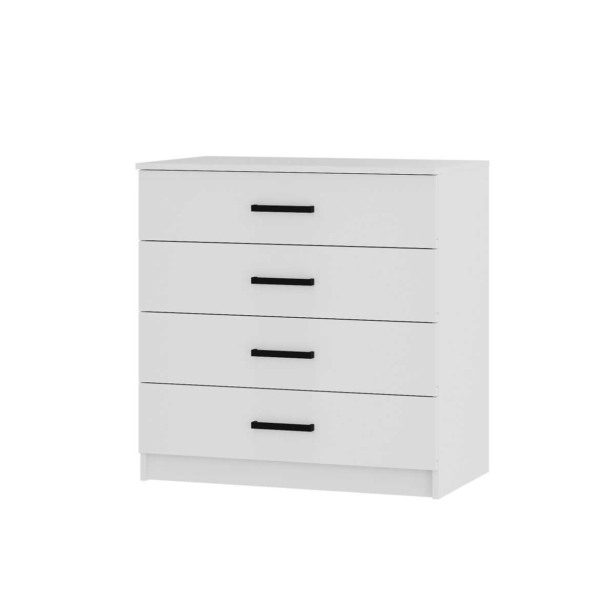 Комод «Фьюжн» КМ-02 оснащена четырьмя вместительными ящиками, в которых можно хранить белье, аксессуары, книги и важные мелочи. Эргономичные черные ручки удобны в использовании.