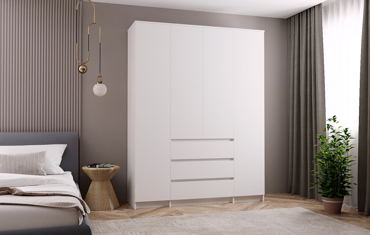 • Боковая часть, с полками и штангой - хром овал для плечиков На фасадах ящиков и